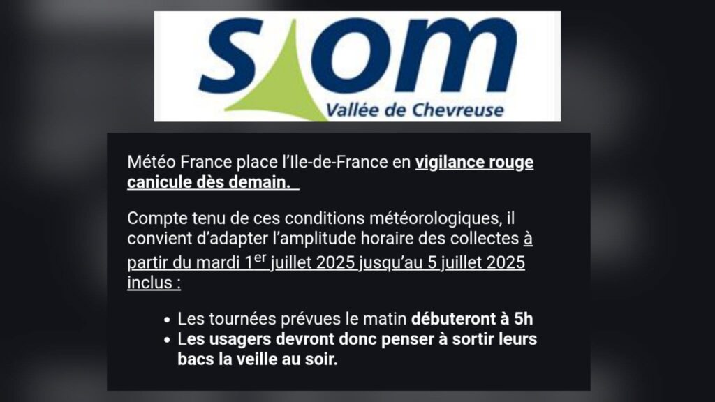 Les services de Météo-France et du Préfet de l’Essonne ont déclenché le niveau orange de l’alerte canicule pour les journées de mardi 12/08, mercredi 13/08 et jeudi 14/08.